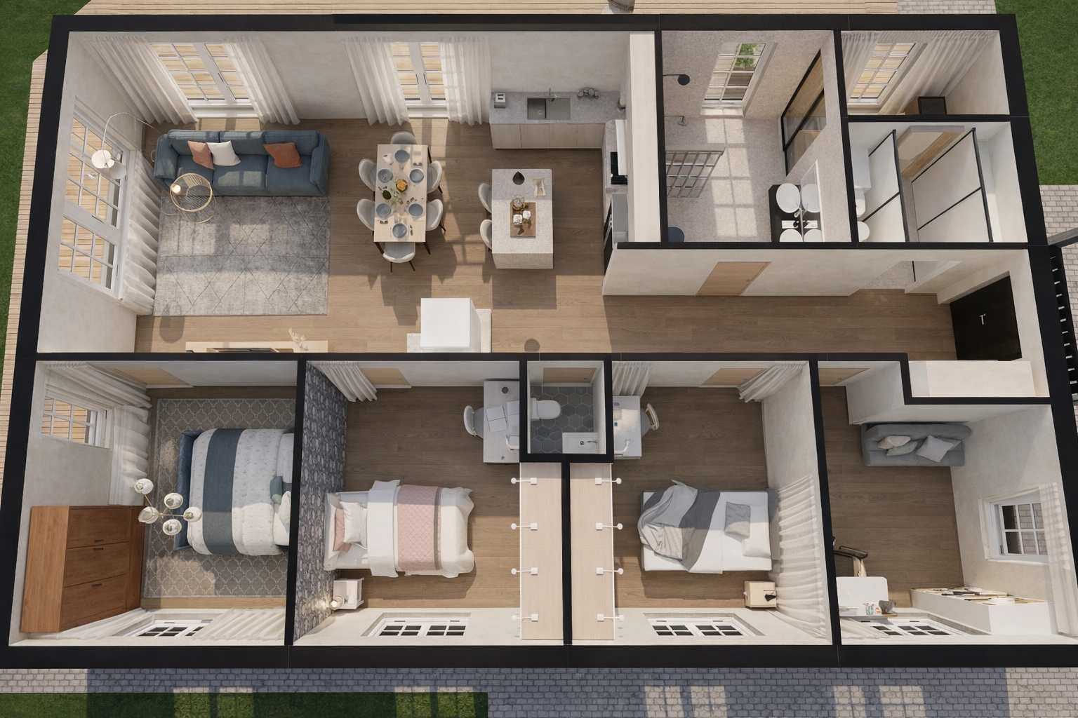 Planeering on loodud igapäevast mugavust silmas pidades. Elutuba ja köök moodustavad avara ja valgusküllase ühise ala, kus on hea veeta aega pere ja sõpradega. Magamistoad on paigutatud rahulikumasse tsooni, pakkudes privaatsust ja vaikust.