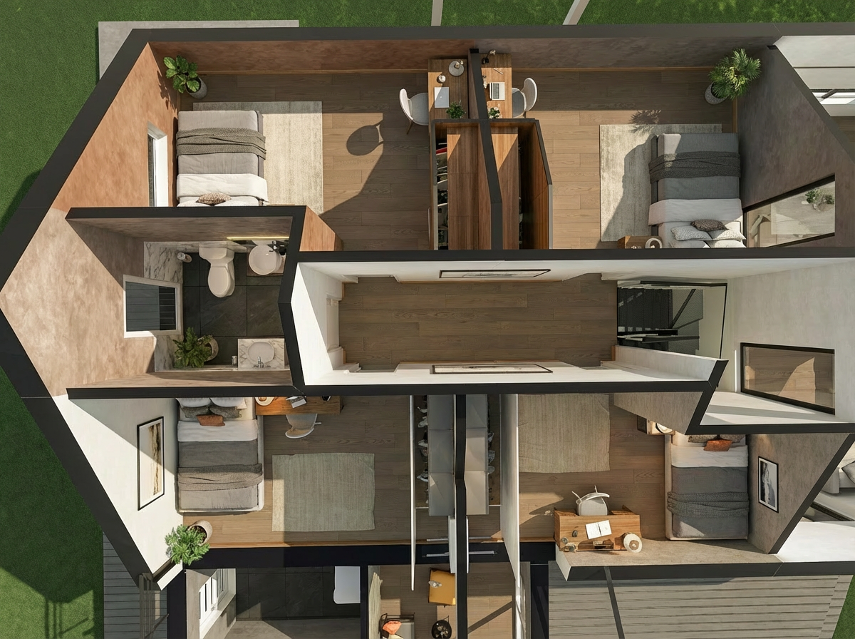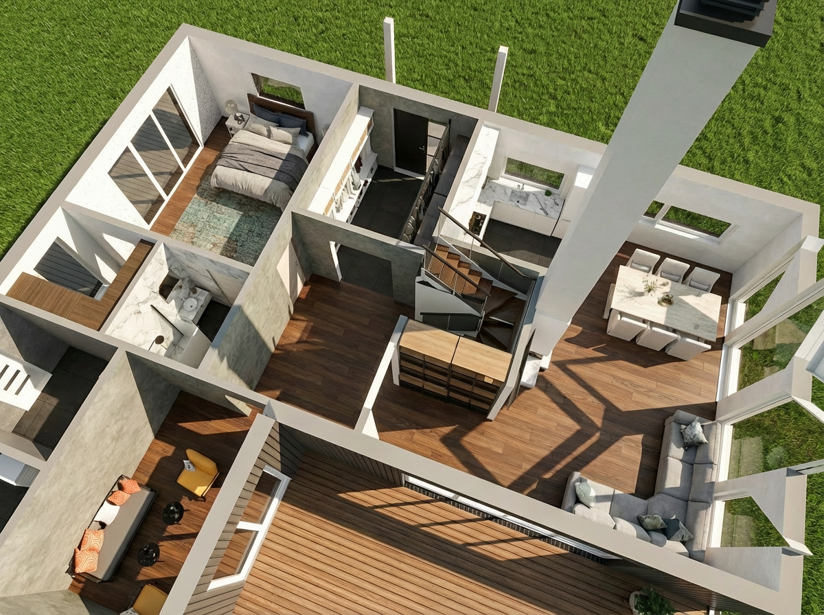 Planeering on läbimõeldud ja praktiline – eluala on avar ja kutsuv, samas kui magamistoad paiknevad privaatsemates majaosades, pakkudes rahu ja eraldatust.