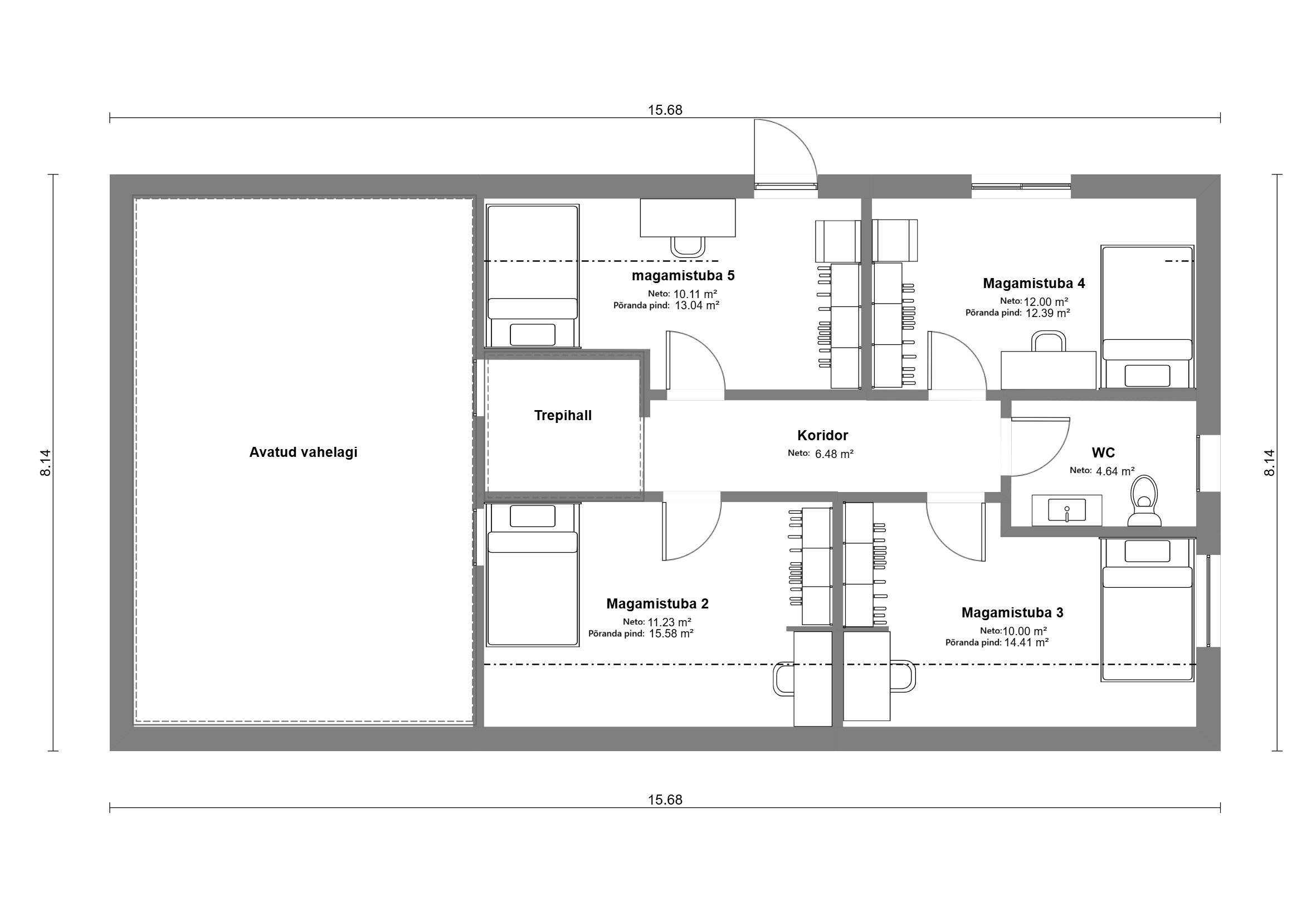 Magamistuba 5 – 10.11 m² (põrandapind 13.04 m²)